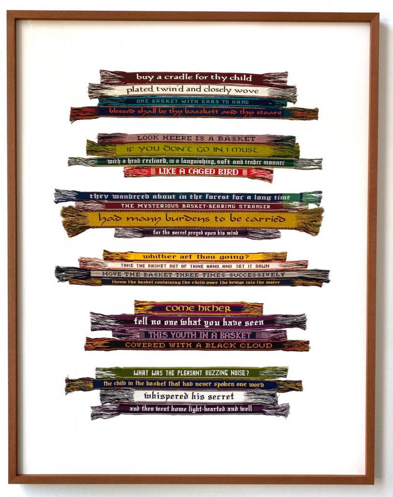 The journey (woven poem), 2023. Realized in collaboration with Gert Jan van Rooij. C-print on Hahnemuhle Museum etching Paper, 350 gsm. Glued on 2 mm bubond, 90 x 116 cm. Framed by Mertens Frames in oak frame (92,7 x 118,7 cm) with artglass (99% UV resistant). Edition of 5 (+ 2 AP).